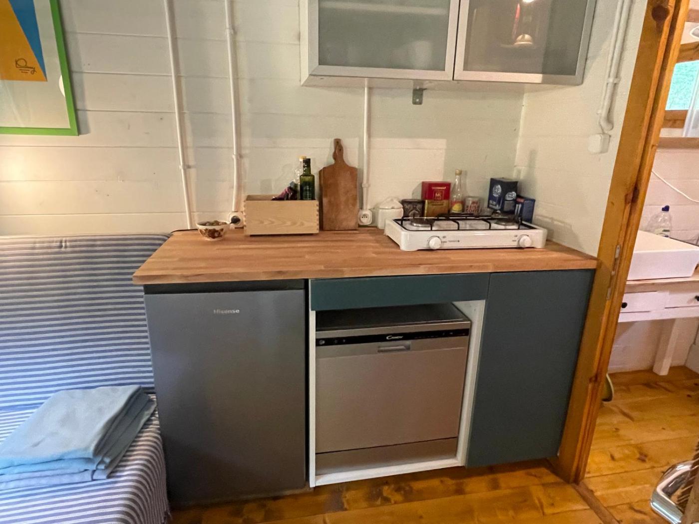 W domu wakacyjnym do dyspozycji gości przygotowano taras, sypialnię (1), salon oraz kuchnię z doskonałym wyposażeniem, w tym zmywarką.